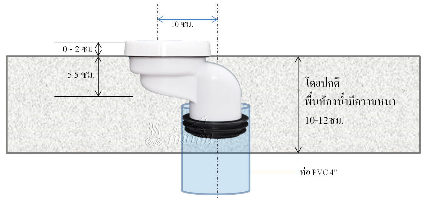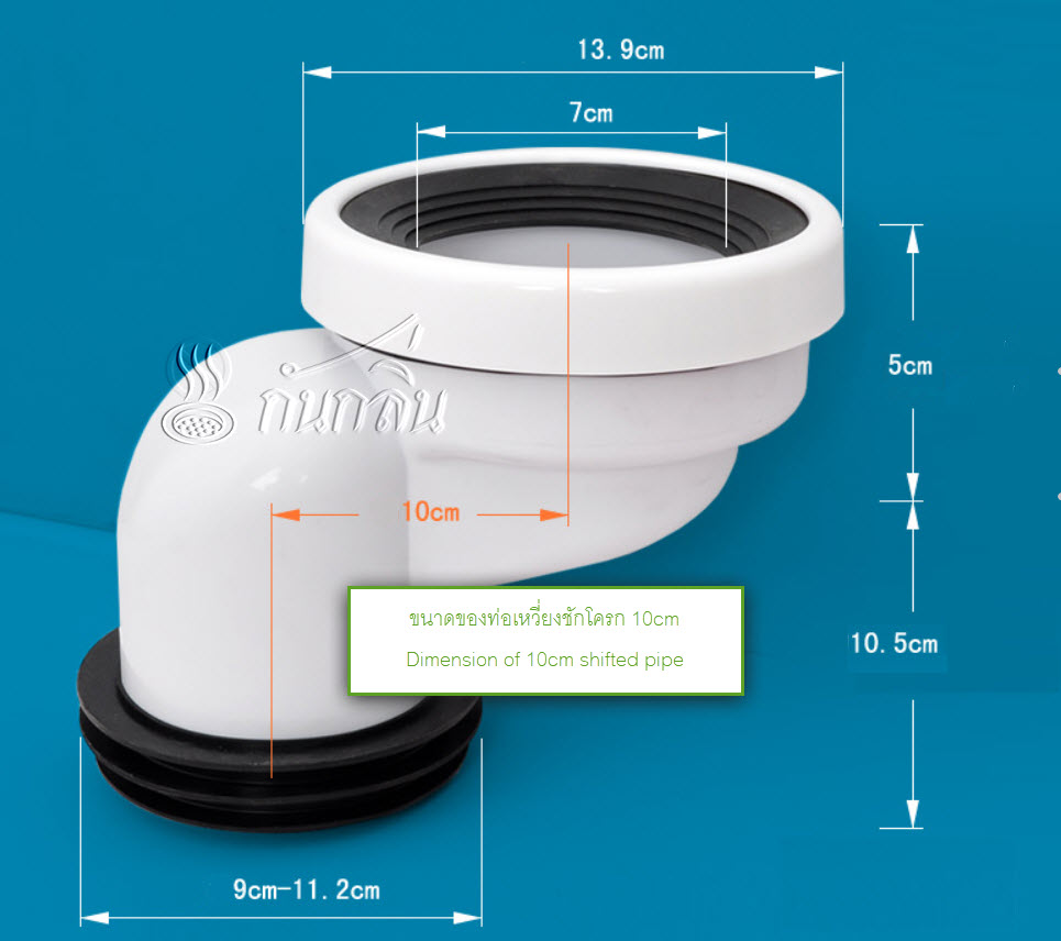 ตัวอย่างการแก้ปัญหาที่ไม่ได้มาตรฐาน วิธีหนึ่งที่แก้ปัญหาดังกล่าวได้คือการใช้ท่อเยื้องศูนย์กลาง ท่อรุ่นนี้แก้ปัญหาเยื้องศูนย์ได้ 10 ซม. รูปด้านล่างเป็นแผนภาพวิธีการติดตั้งท่อเยื้องศูนย์กลางชักโครก